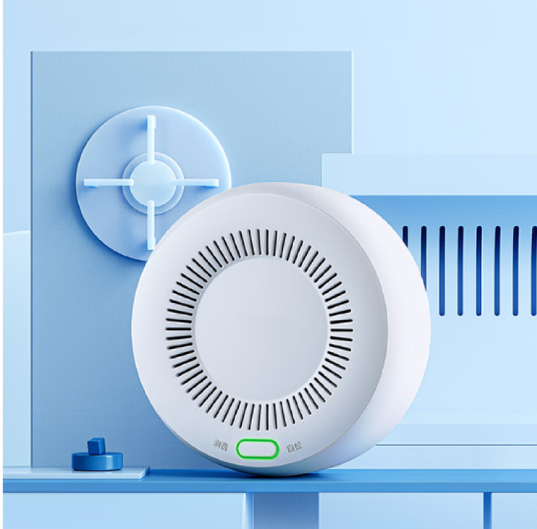 2.烟雾传感器:采用粘贴式安装与电池供电,无需复杂布线,当厨房烟雾浓度超标(如忘记关火、油烟过浓),设备每53秒闪烁报警并联动后台,24小时守护烹饪安全;